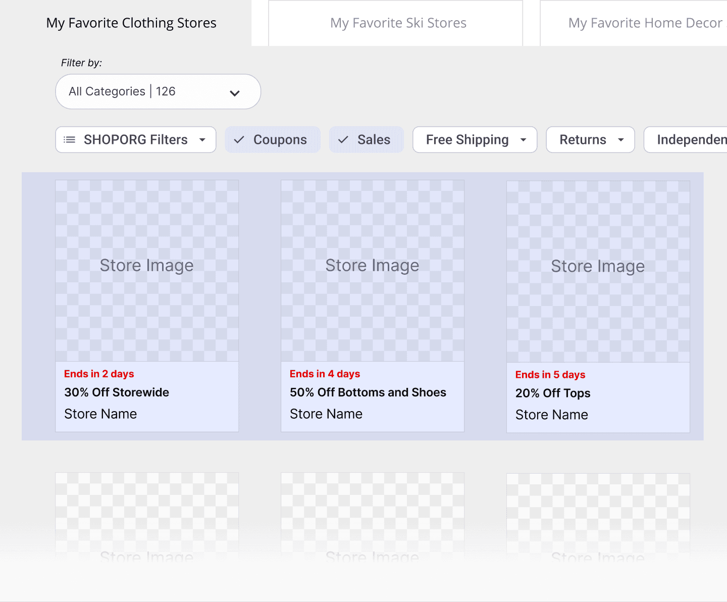 Putting deals and promotions relevant to the Favorite Stores tab category will allow users to easily browse and compare offers to find the best deals.
