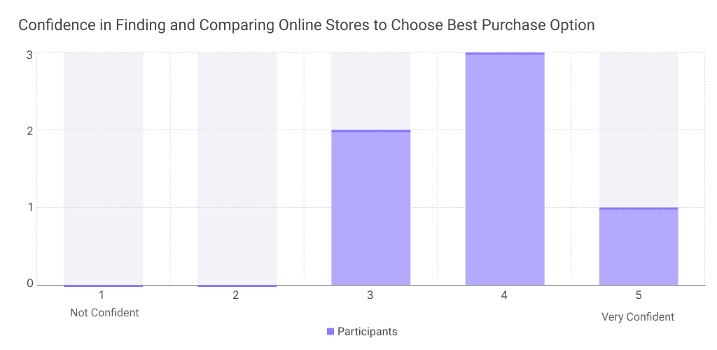 We selected 6 participants who shopped online at least a few times a month, recently explored new stores, and were moderately confident in their ability to compare online stores to buy the best option.