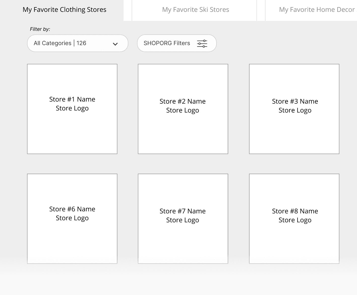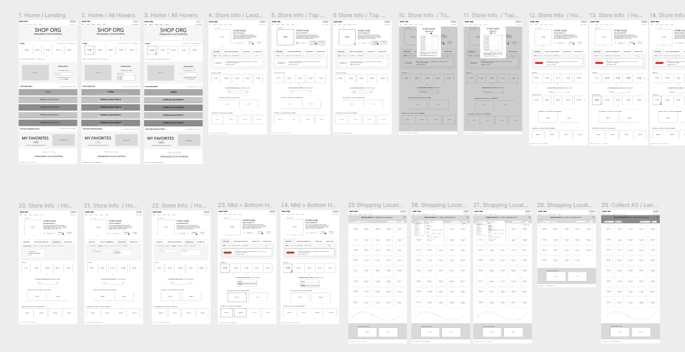 Excluding any details about their core technology, our client was gracious in answering our questions about the product’s general offerings. We were given stripped-down NDA-safe static wireframes, composed of squares and placeholder text, and void of color. As this was their platform’s first UX evaluation and because of the NDA, they also weren't too sure what could be evaluated and what outcomes they were looking for. While this was definitely going to be a challenge, we accepted it and were determined to use what we did have to help improve SHOPORG’s design. We assured our client that we would take a look at the prototype and send her some test questions and tasks to choose from to help them narrow down their evaluation goals.